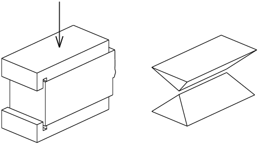 Obr. 1: Tlačený vzorek z cementové malty a klínové útvary zbylé po zkoušce